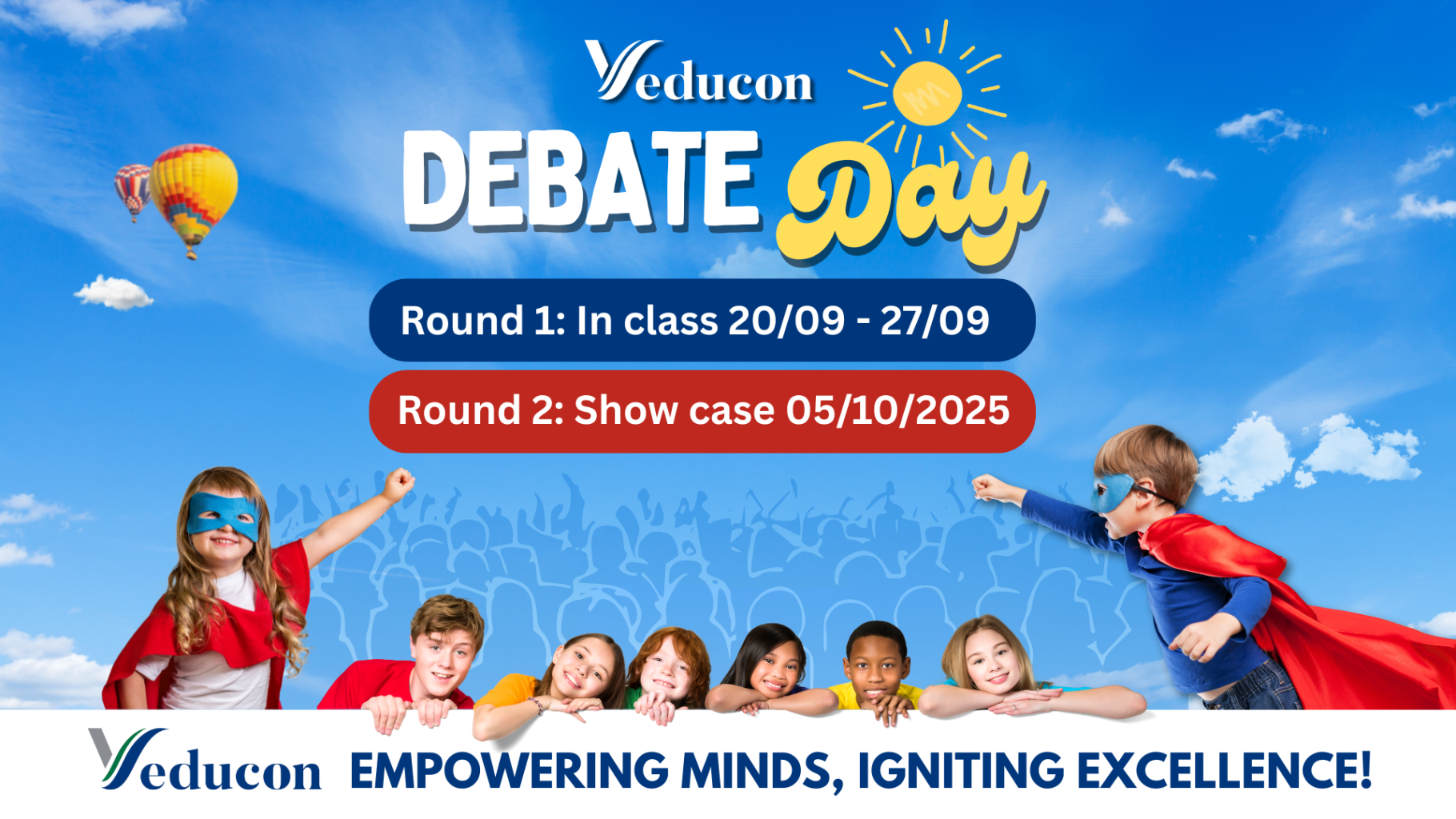 Debate Day là sự kiện định kỳ được tổ chức 3 tháng một lần tại Veducon, nhằm tạo cơ hội để tất cả học sinh khóa Tranh biện được tổng kết quá trình học tập, rèn luyện bản lĩnh trên sân khấu, và quan trọng nhất là cọ xát trong môi trường thi đấu thực tế. Đây không chỉ là một cuộc thi mà còn là ngày hội để các con thể hiện sự tiến bộ, tinh thần đồng đội và khả năng tư duy phản biện mà mình đã rèn luyện trong suốt khóa học.